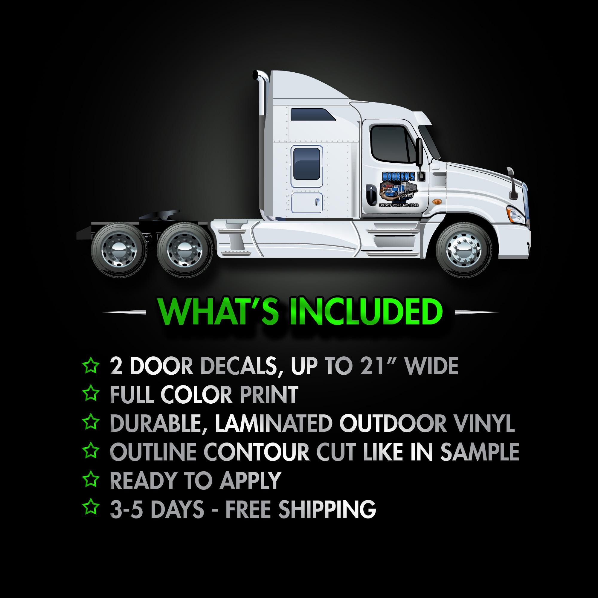 Order today and receive professional truck door decals printed from your own design.